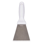Remco’s color-coded stainless steel scraper is an excellent solution for removing stubborn debris from smooth surfaces. The metal hand scraper tool’s beveled blade loosens dried pastry dough, starches, chocolate, and burnt food. The scraper is made entirely of FDA compliant materials, making it safe for food contact. Its ridged blade and ergonomic handle stand up to heavy and repeated use.