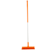 This fully color-coded sweeping broom has two types of bristles (stiff and soft) to pick up every particle. The stiff bristles loosen stubborn dirt, and the soft bristles sweep away loose particles. When pushing the broom forward the front rows, which have firm bristles, loosen the dirt and push heavier debris. The softer bristles of the back rows, gather the finer particles. It is suitable for all areas in kitchens and restaurants. Includes a 60" color-coded, aluminum handle.