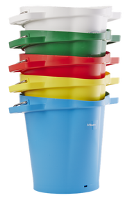This durable 5 gallon pail is a problem-solver, however you use it. Move, mix, store, sanitize; regardless of the application, this hygienic pail is designed with food safety and functionality in mind. This color-coded polypropylene pail is made from FDA-compliant materials and tough enough to stand up to the harshest chemicals, including caustics / acids (see pH max/min below). Features like the bottom handle and a rounded rim and lip also facilitate ergonomic, no-spill lifting and pouring. And durable beveled measurements inside help you measure more accurately. Optional lid is available.