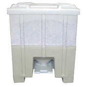 This all one-piece molded plastic hopper includes a separate double-wall base for foods, chemicals and pharmaceuticals. It is rotomolded of food-grade, heavy-duty polyethylene (HDPE) for toughness, durability and weight advantages. This plastic hopper bin is much lighter than conventional metal hoppers and eliminates metal corrosion. It includes a top-filling opening (with lid) and bottom discharge, allowing fast filling and dispensing of bulk powders, grains/malts, granulars and tablets. FOR DRY MATERIALS ONLY.