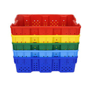 This large, ventilated agricultural container is used in the harvesting, storage, and processing of asparagus, beans, blueberries, cherries, figs, grapes, mushrooms, and other small to midsize fruits and vegetables. Minimum Order is (1) Pallet – 150 Containers, Special Volume Pricing on 4 or More Pallets. There are two versions, one with the bottom and all four sides vented (pictured) and one with bottom and just the two long sides vented. The additional vented ends is the only difference between the two versions.