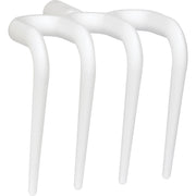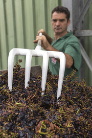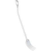 Providing a cost-effective alternative to stainless steel, this lightweight food rake and fork bundle is ideal for moving and lifting fruit or general food handling. Perfect for wineries. The hygienic fork has a reinforced handle with an inner aluminum tube. It is stepped in two places which helps to prevent back injuries. It is mostly used for emptying out fresh produce from large containers. Both items are white in color.