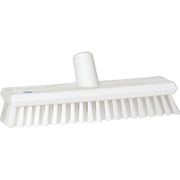 This is an medium, short-bristled waterfed floor scrub. When dirt is stubborn and sticky, this floor scrub can withstand heavy downward force from the user. Its size makes it ideal for cleaning in narrow spaces. The waterfed floor scrub has a very effective water distribution and is ideal for use in heavily soiled areas such as slaughterhouses and meat processing plants. Fits any Vikan euro-threaded handle (NOT included).