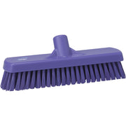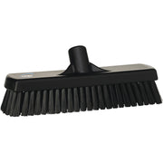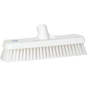 This 12" Vikan floor/wall scrub has firm/stiff bristles. The bristle length is perfect for scrubbing all types of floors; epoxy, tiles, cement, etc. It also reaches well into holes and grouting to remove hidden dirt. NOTE: HANDLE NOT INCLUDED. Please consider SKU 7060x-2937x if you want a 60" color-coded handle.