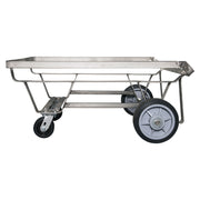 This tall, stainless steel undercarriage features caster wheels that are impervious to meat fat and bearings equipped with grease fittings. This model includes a built-in stop that allows the tub to be tipped and emptied. This tub accessory is commonly used for meat, seafood, poultry, commercial fishing, confectionery, bakery, and grain applications. Replacement casters and wheels are available. Works with the Remco Large Angled Dump Tub 6901x and 6905x.