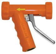 Designed for use in the food processing industry and built to withstand the harshest working conditions. A heavy-duty brass body with stainless steel and brass components. A trigger controlled variable spray pattern that instantly shuts off when trigger is released. Insulated rubber cover with yellow direction arrows. Replacement parts available.