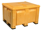 These durable and lightweight spent grain bins are excellent for storing/transport grains for your brewery. Most importantly, they meet the Food Safety Modernization Act (FSMA) requirements for spent grain removal (21 CFR 117.95). They are made of USDA/FDA-compliant materials and color-coded. They can be easily cleaned or pressure washed before reuse to ensure food safety. The optional lids will keep pests away, tamp down smells, and still allow the grain bins to be stacked for storage/transport. Unlike standard trash bins, these grain storage containers won't be confused for trash. Runners allow for easy transport via forklift or pallet jack which prevents injury to your staff. They are so lightweight you can move an empty container by hand! The one-piece, high-density polyethylene (HDPE) construction is durable yet flexible - it won't shatter if you puncture with the forklift. Ship 4 bins/4 lids to a skid space.