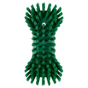 A favorite of the meat and dairy industries, our updated XL hand brush makes a big impact thanks to its size and stiff bristles. When you need to clean bigger surface areas with hard-to-reach corners or crevices, this large scrub brush may be the tool you need. This sturdy brush is made of a solid block. The “butterfly” shape of the block has been designed to give users a better, more ergonomically friendly grip. The brush sits flush against most users’ hands, making it comfortable and easy to hold even while dealing with cleaning chemicals and wet or greasy hands. Like all brushes in our Hygiene range, the Vikan XL hand brush is designed to be used in areas where cleanliness and sanitation matter most, making it ideal for the food processing industry. The smooth surface finish, lack of sharp angles, and sloped drainable hanging hole all make it easy to clean and store. Whether you’re cleaning tanks, tables, conveyor belts, or buckets, the XL hand brush with very stiff bristles can help you get the job done quickly and effectively.